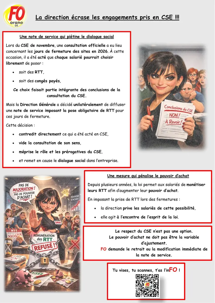 FO demande la modification immédiate des notes d’informations RTT imposés 2026